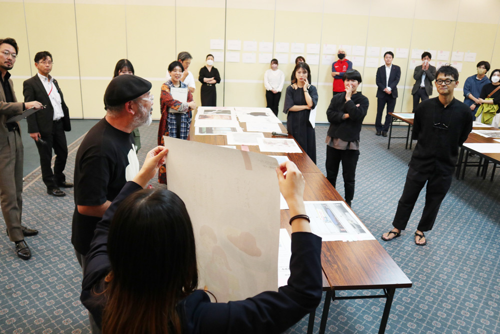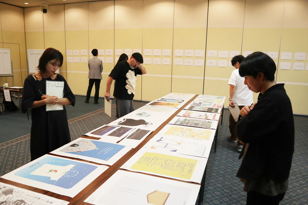 公開審査の会場には、原寸大で出力されたたくさんの応募作が並んでいました。