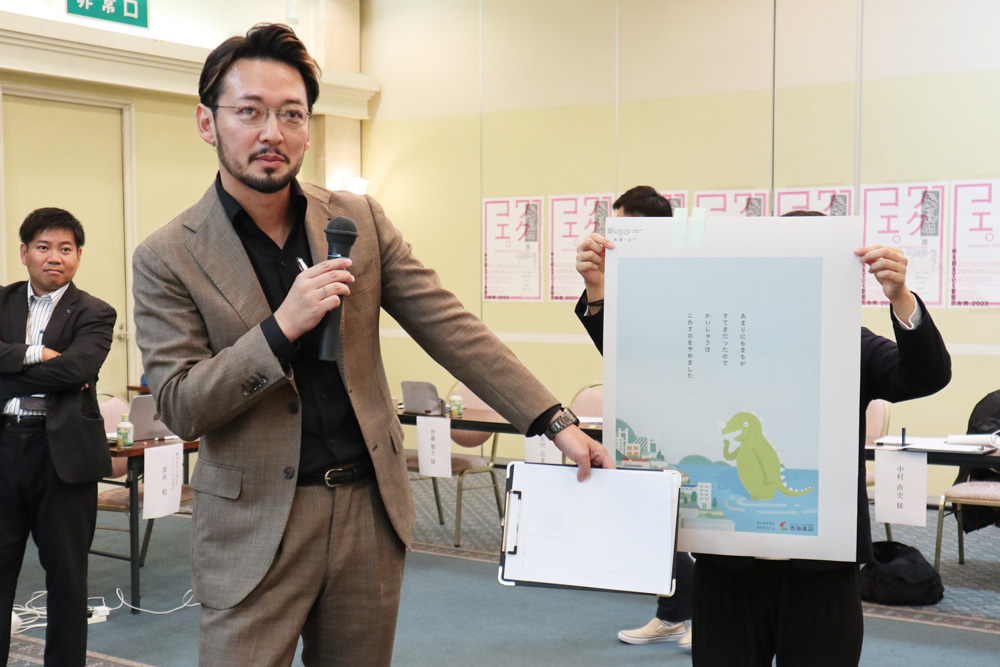 デザイン部門の最優秀賞は水を守る管工事業が持つイメージの枠を、ロマンチックに超えていました。コピー部門の最優秀賞は建設業が持つイメージの枠を、コミカルに超えていました。枠の超え方にもいろんな超え方があることを感じた審査会でした。最優秀賞には選ばれませんでしたが、「大田タケ(98)まさかの不参加」の原稿には「介護の現場に参加してみたい」と思わせるものがあり印象に残りました。応募者のみなさんも、審査員のみなさんも、公開審査会に参加されたみなさんも、全員が「どうやって枠を超えるか」を考える機会は、それだけでもとても貴重なものだと思える時間でした。